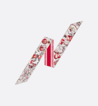The ABCDior Mitzah scarf, crafted in silk twill, showcases one of 26 flowers that represent Christian Dior's love of nature. A passion that flourishes like never before upon Maria Grazia Chiuri's delicate creations in a celebration of botanical beauty. From a fluffy cloud, Cupid shoots an arrow. It passes through two winged lovers and hits a physalis. The point pierces this fruit, symbol of passion, before it explodes into a thousand pieces, creating an intensely starry sky. Enhanced by a contrasting Christian Dior signature jacquard band on the back, the ivory multicolor Mitzah scarf adds the finishing touch to any look and may be tied around the neck, at the wrist or on a bag. - ABCDior print - Letter A Alkekenge - Amour - Contrasting jacquard band with Christian Dior signature on back - Pointed ends - 100% silk twill - Made in Italy - Sold with leaflet Size & Fit - Dimensions: 6 x 105 cm / 2.5 x 41.5 inches