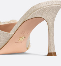 The Adiorable heeled slide is modern and elegant. The gold-tone fringed laminated grosgrain upper features a deconstructed bow on the front embellished with a white resin pearl with the CD signature. Completed by an 8-cm (3-inch) heel, the shoe will lend a refined touch to any of the season's looks. - Main composition: cotton and technical fabric - Goatskin lining - Bow with decorative CD resin pearl - Calfskin sole with star, Christian Dior's lucky symbol - Made in Italy Size & Fit - Heel: 8 cm / 3 inches - Weight: 180 g / 6.5 ounces - Weight details may vary depending on the product's material - Using our personalized tool will provide you with the best size recommendation - For more information, please review the size guide