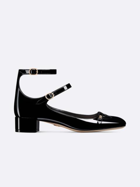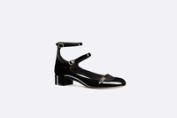 As seen at the Spring-Summer 2023 fashion show, the Aime Dior pump revisits the Mary Jane with a refined creation. Crafted in black patent calfskin, it stands out with two thin buckled straps that highlight the ankle, as well as a cutout in the front adorned with a gold-finish metal Dior signature. Completed by a 3 cm (1) block heel, the delicate pump will lend an elegant touch to any look. - Gold-finish metal Dior signature - Adjustable ankle straps with buckles - Leather sole with star, Christian Dior's lucky symbol - Made in Italy Size & Fit - Block heel: 3 cm / 1 inch - The strap at the ankle measures 27.5 cm (11) in total. The lower strap measures 17.5 cm (7) - The style fits true to size: we recommend ordering your normal shoe size - For those with wider feet, we recommend ordering a half-size larger than your normal size - For more information, please review the size guide