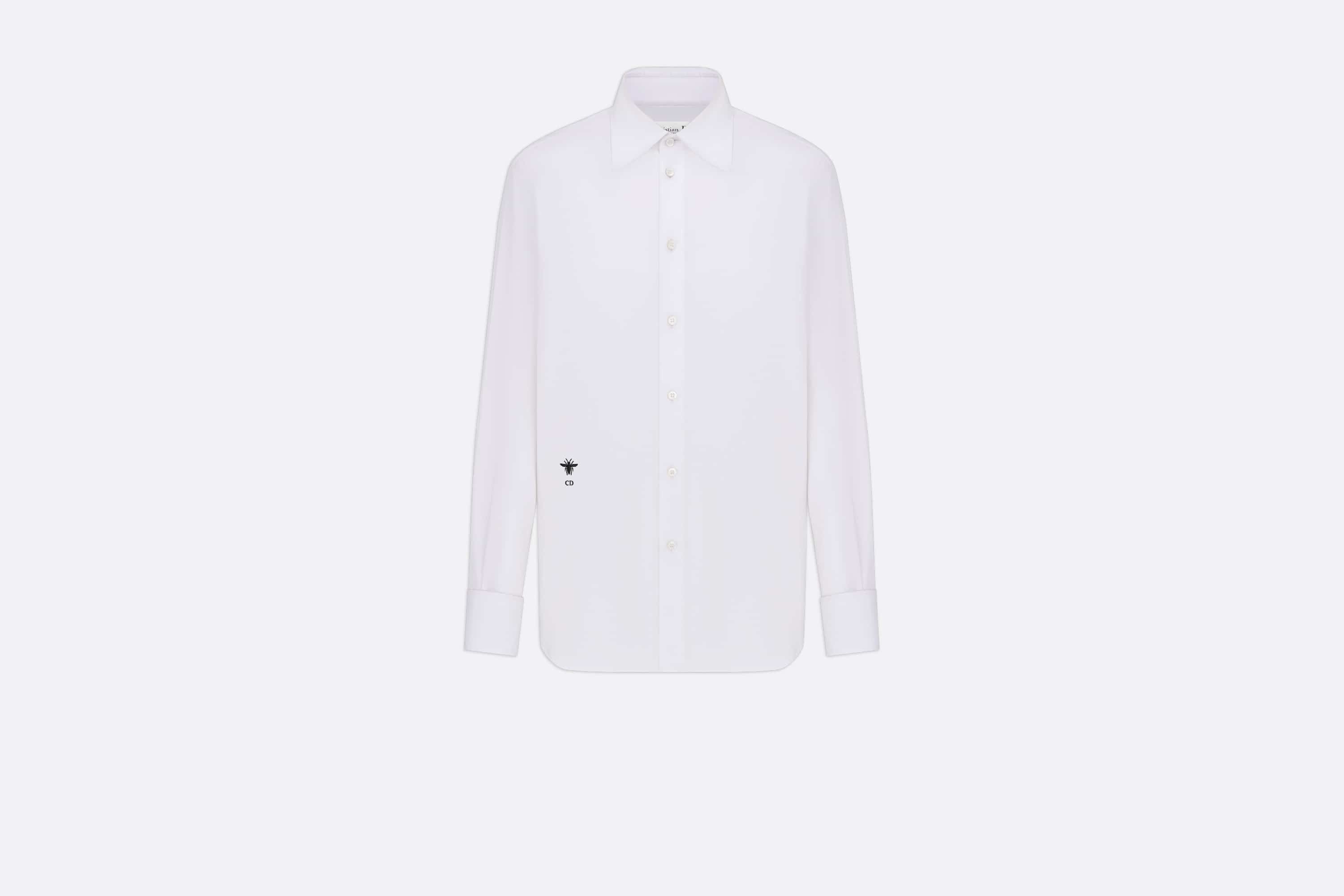 The white cotton poplin blouse offers a new twist on a timeless classic. The refined design features a pointed collar and French cuffs for added sophistication. An embroidered bee and CD signature subtly embellish the blouse, which can be coordinated with formal wear and more laid-back looks. - Embroidered hallmark bee and CD signature - Front button closure - Christian Dior signature mother-of-pearl buttons - French cuffs - Unlined - 100% cotton - Made in Italy Size & Fit - Regular fit - Long sleeves - Using our personalized tool will provide you with the best size recommendation - For more information, please review the size guide