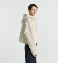 The cardigan showcases the iconic Cannage motif. The ecru blended wool and cashmere textured-knit design features a zip closure, a hood and the tonal Christian Dior Paris signature on the back. The cardigan will complete any casual outfit from the season. - Christian Dior Paris signature on the back - Front zip closure - Hood - 50% wool, 30% polyamide, 20% cashmere (5 gauge)* - Made in Italy - Treat with extra care and gently dry clean Size & Fit - Regular fit - Long sleeves - Using our personalized tool will provide you with the best size recommendation - The model measures 181 cm / 71.5 inches and the item shown is in size 36 (FR) - For more information, please review the size guide