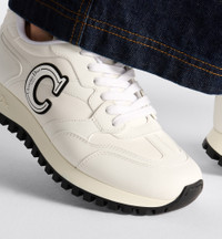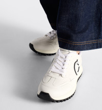 The C'est Dior sneaker is a bold and modern creation. The white calfskin is elevated on either side of the upper by black and white rubber C and D letters with the Christian Dior Paris signature. The tongue and two-tone ultralightweight sole with signatures accentuate the sportswear appeal while offering maximum comfort. The sneaker will add a contemporary touch to any laid-back look. - Main composition: calfskin - Technical fabric lining - Rubber C and D initials on the sides - Christian Dior Paris signature on the tongue and sole - Two-tone notched rubber sole with star, Christian Dior's lucky symbol - Made in Italy - Additional set of laces provided Size & Fit - The style fits true to size, we recommend ordering your normal shoe size - Weight: 395 g / 14 ounces - Using our personalized tool will provide you with the best size recommendation - For more information, please review the size guide