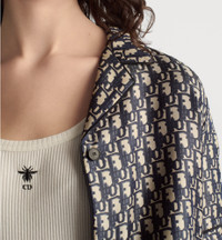 The shirt highlights the hallmark blue Dior Oblique motif. Crafted in silk twill, the design is embellished with a 'CHRISTIAN DIOR' signature contrasting hem, while a button closure and two pockets adorn the front. The lightweight and refined short-sleeved shirt may be paired with the matching pants or shorts to complete the look. - 'CHRISTIAN DIOR' signature contrasting hem - Piping details - Front button closure - Horn buttons - Unlined - 100% silk - Made in Italy Size & Fit - Relaxed fit - Short sleeves - For more information, please review the size guide
