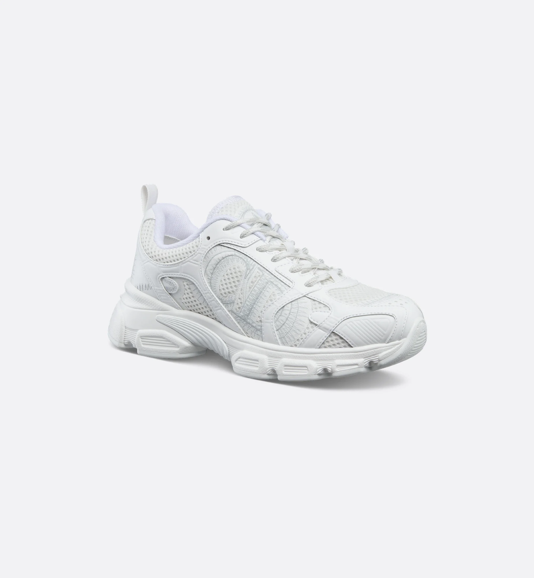 The Dior Chrono sneaker revisits the running shoe with the House's couture codes. Pairing mesh with white leather-effect panels, it is accented by hallmark detailing like the CD signature on the sides, a star patch on the tongue and a rear Dior signature. Featuring two-tone laces and an ultralightweight sole adorned with a star, the sneaker will complete laid-back outfits year-round. - Main composition: technical fabric - Technical fabric lining - CD signature on the sides - Star patch on the tongue - Dior signature on the back - Two-tone laces - Signature EVA sole with star, Christian Dior's lucky symbol - Made in Italy - Additional set of laces provided Size & Fit - The style fits large, we recommend ordering half a size smaller than your normal size - Weight: 378 g / 13.5 ounces - Using our personalized tool will provide you with the best size recommendation - For more information, please review the size guide