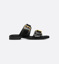 New for Cruise 2025, the D-Avenue slide is an urban and elegant creation. Crafted in black openwork Microcannage calfskin, it features two straps embellished with adjustable buckles and the gold-tone Christian Dior Paris signature on the upper strap. Completed by a comfortable padded Microcannage sole, the slide will lend a refined touch to any casual look. - Main composition: calfskin - Calfskin lining - Christian Dior Paris signature on the strap - Adjustable straps with buckle - Microcannage padded leather insole - Rubber and calfskin sole with star, Christian Dior's lucky symbol - Made in Italy Size & Fit - The style fits true to size, we recommend ordering your normal shoe size - Using our personalized tool will provide you with the best size recommendation - For more information, please review the size guide