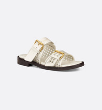 New for Cruise 2025, the D-Avenue slide is an urban and elegant creation. Crafted in white openwork Microcannage calfskin, it features two straps embellished with adjustable buckles and the gold-tone Christian Dior Paris signature on the upper strap. Completed by a comfortable padded Microcannage sole, the slide will lend a refined touch to any casual look. - Main composition: calfskin - Calfskin lining - Christian Dior Paris signature on the strap - Adjustable straps with buckle - Microcannage padded leather insole - Rubber and calfskin sole with star, Christian Dior's lucky symbol - Made in Italy Size & Fit - The style fits true to size, we recommend ordering your normal shoe size - Using our personalized tool will provide you with the best size recommendation - For more information, please review the size guide