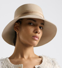 Reimagined in a couture variation, the D-Bobby hat is crafted in beige rabbit felt and enhanced by a tonal satin band embroidered with the Christian Dior Paris signature. Timeless and iconic, the large-brim hat will lend the finishing touch to any daytime outfit. - Tonal satin band embroidered with Christian Dior Paris signature - Large brim - Main composition: 100% rabbit felt - Band: 76% viscose, 22% polyester, 2% cotton - Made in Italy Size & Fit - The hat size corresponds to the head's circumference in cm / inches - Four sizes available: 56 cm / 22 inches, 57 cm / 22.5 inches, 58 cm / 23 inches, 59 cm / 23.5 inches