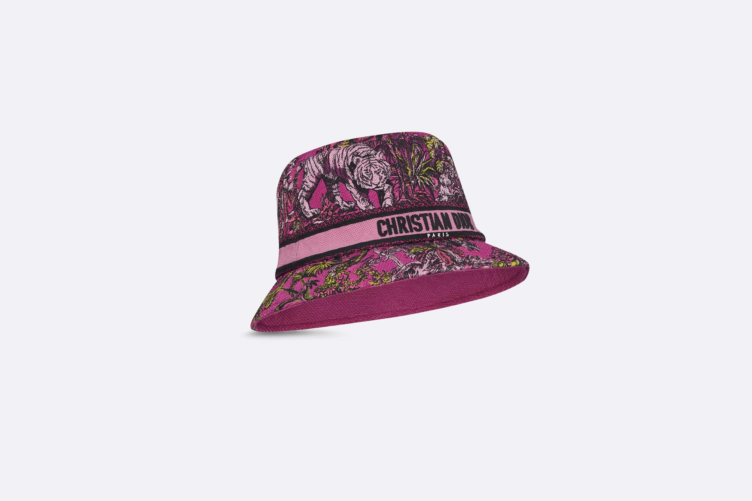 Part of the collaboration with Italian artist Pietro Ruffo, the D-Bobby Toile de Jouy Voyage bucket hat sets Mr. Dior's iconic pattern in the heart of Indian flora and fauna. Crafted in fuchsia multicolor fully embroidered cotton, the style is enhanced by a tonal band embroidered with the Christian Dior Paris signature. Elegant and colorful, the small brim hat will lend the finishing touch to modern outfits and can be coordinated with other Toile de Jouy Voyage creations from the collection. - Fuchsia multicolor embroidered Toile de Jouy Voyage motif - Tonal embroidered band with Christian Dior Paris signature - Small brim - 100% cotton - Made in Italy Size & Fit - The hat size corresponds to the head's circumference in cm / inches - Four available sizes: 56 cm / 22 inches, 57 cm / 22.5 inches, 58 cm / 23 inches, 59 cm / 23.5 inches
