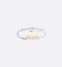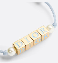 New for Summer 2025, the D-Dice bracelet pays homage to the House's Dior signature in a playful and fresh design. The sky blue cotton cord features gold-finish metal dice with a sky blue lacquer Dior signature bookended by two white resin pearls. The colorful bracelet can be combined with other pieces from the D-Dice line. - White resin pearls - Dice with Dior signature in sky blue lacquer - Gold-finish metal - Sky blue cotton cord - Slide fastening - Made in Europe Size & Fit - Adjustable length: 14 – 22 cm / 5.5 – 8.75 inches