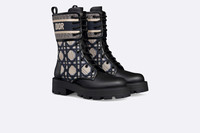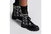 The D-Major ankle boot reframes military inspiration with elements of House couture. Crafted in black calfskin with deep blue and beige embroidered Cannage cotton, the style is enhanced by a Christian Dior Paris embroidered band inspired by the Dior Book Tote. The ultra-lightweight EVA sole adds the finishing touch to the modern, bold shoe. - Christian Dior Paris signature embroidered on the upper - Christian Dior tongue - Rear tab - Notched EVA sole with star, Christian Dior's lucky symbol - Made in Italy Size & Fit - The upper is 19.5 cm / 7.5 inches high - The style fits true to size, we recommend ordering your normal shoe size - For those with wider feet, we recommend ordering a half-size larger than your normal size - For more information, please review the size guide