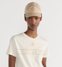The D-Player cap combines the House's couture spirit with sportswear codes. Crafted in beige cotton, it features an embroidered Christian Dior signature and the House's lucky star on the front. A rear adjustment tab in camel lambskin with an embossed Christian Dior Paris signature further enhances the style. The cap will add the finishing touch to relaxed and modern looks. - Beige Christian Dior and star embroideries on the front - Christian Dior Paris embossed camel lambskin adjustment tab in the back - 100% cotton, lining: 100% cotton and details: 100% lambskin - Made in Italy Size & Fit - The hat size corresponds to the head's circumference in cm / inches - Four sizes available: 56 cm / 22 inches, 57 cm / 22.5 inches, 58 cm / 23 inches, 59 cm / 23.5 inches