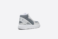 The D-Player sneaker draws inspiration from the basketball shoe and offers a modern variation on a timeless style. The grey reflective quilted nylon style is enhanced by metallic silver details and is further distinguished by a 'CHRISTIAN DIOR' signature band on the rear. The supple and lightweight sole completes the contemporary sneaker. Round toe Treaded sole Lace-up Upper: Technical Fabric, Leather; Sole: EVA Made in Italy