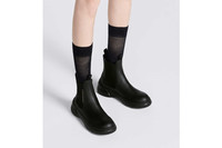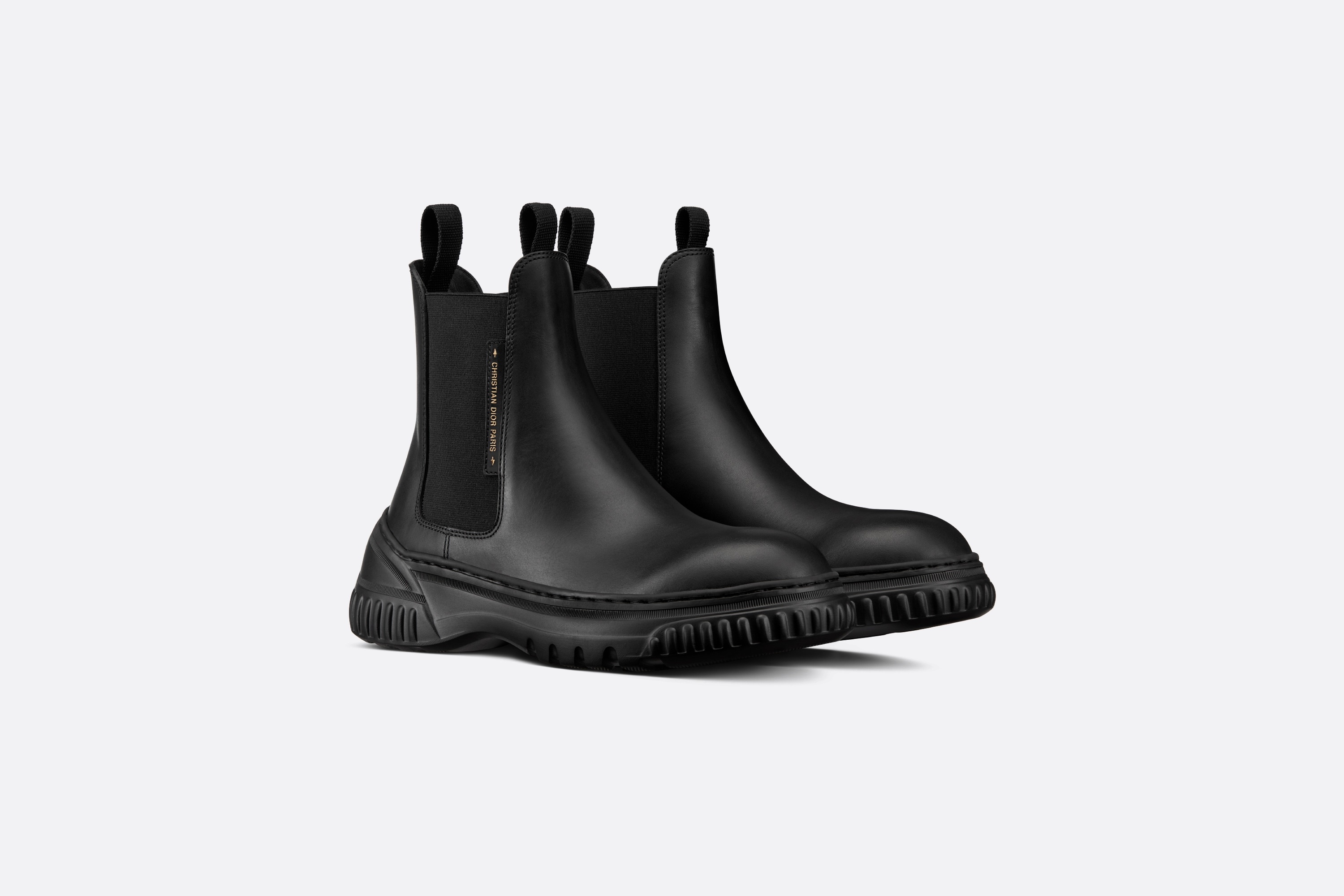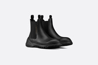 The D-Racer ankle boot is distinguished by a timeless look with a modern Dior twist. Featuring a black calfskin upper, the Chelsea design is completed by stretch bands, and is further enhanced by a gold-tone 'CHRISTIAN DIOR PARIS' signature. Boasting a thick signature EVA sole, the ankle boot will lend the finishing touch to the season's casual outfits. - Front and rear tabs - Gold-tone 'CHRISTIAN DIOR PARIS' signature on the side - 'Christian Dior PARIS' signature at the back of the sole - Sole in EVA with star, Christian Dior's lucky symbol - Made in Italy Size & Fit - The upper is 15 cm / 6 inches high - The style fits true to size: we recommend ordering your normal shoe size - For those with wider feet, we recommend ordering a half-size larger than your normal size - For more information, please review the size guide