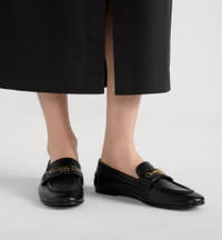 New for Fall 2025, the Dior Boy loafer offers a refined take on classic codes. The black supple calfskin upper has an almond-shaped toe, while the vamp is accented by a gold-finish metal Christian Dior Paris signature. The shoe will complete this season's looks with elegance. - Main composition: calfskin - Lambskin lining - Gold-finish metal Christian Dior Paris signature on the front - Leather sole with star, Christian Dior's lucky symbol - Made in Italy Size & Fit - Using our personalized tool will provide you with the best size recommendation - For more information, please review the size guide