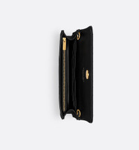 New for Winter 2025, the Dior Caro pouch with chain is practical and elegant. Made in black lambskin enhanced by Macrocannage topstitching, it features a flap with an antique gold-finish metal CD signature delicately embellished with a pave of white crystals that opens to reveal a compartment that will accommodate all the essentials. The removable chain with CD chain links allows it to be carried by hand, worn over the shoulder or crossbody, making it the ideal pouch, day or evening. - Main composition: lambskin - Lambskin and technical fabric lining - CD signature with crystals on the front - Flap closure - Zip pocket and interior slip pocket - Six card slots - Spacious interior compartment - Rear curved slip pocket - Removable chain - Made in Italy Size & Fit - Dimensions: 20 x 11.5 x 3.5 cm / 8 x 4.5 x 1.5 inches (Length x Height x Width) - The size is suitable for a phone and a card holder - Chain length: 109.5 cm / 43 inches - Chain drop length: 51.5 cm / 20.5 inches - Size and weight details may vary depending on the product's material