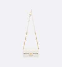 New for Winter 2025, the Dior Jolie mini bag presents an elegant and functional design. Crafted in latte lambskin with Cannage stitching, the style features a flap, enhanced by a gold-finish metal CD signature with a white resin pearl, that opens to reveal a compartment to accommodate all the essentials. The adjustable and detachable CD chain link strap is interspersed with white resin pearls and includes a leather insert, allowing the bag to be comfortably carried by hand, worn over the shoulder or crossbody, day or evening. - Main composition: lambskin - Lambskin and technical fabric lining - CD clasp with white resin pearl on the front - Flap closure - Interior slip pocket - Six card slots - Adjustable and removable chain shoulder strap with resin pearls and leather insert - Dust bag included - Made in Italy Size & Fit - Dimensions: 21 x 11.5 x 4.5 cm / 8.5 x 4.5 x 2 inches (Length x Height x Width) - The size is suitable for a card holder, sunglasses and lipstick - Strap length: 110 – 118 cm / 43.5 – 46.5 inches - Drop length: 52 – 56 cm / 20.5 – 22 inches - Weight: 325 g / 11.5 ounces - Size and weight details may vary depending on the product's material