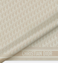 The square scarf showcases the Dior Oblique Natte print, revisiting the House's iconic motif in a graphic style. Crafted in beige double-sided silk twill, it features hand-rolled edges and is enhanced by a contrasting jacquard band with the Christian Dior signature. The square scarf can be tied around the neck or head to complete a Dior look. - Beige double-sided Dior Oblique Natte print - Contrasting jacquard band with Christian Dior signature - Hand-rolled edges - 100% silk twill - Made in Italy Size & Fit - Dimensions: 70 x 70 cm / 27.5 x 27.5 inches (Length x Width)