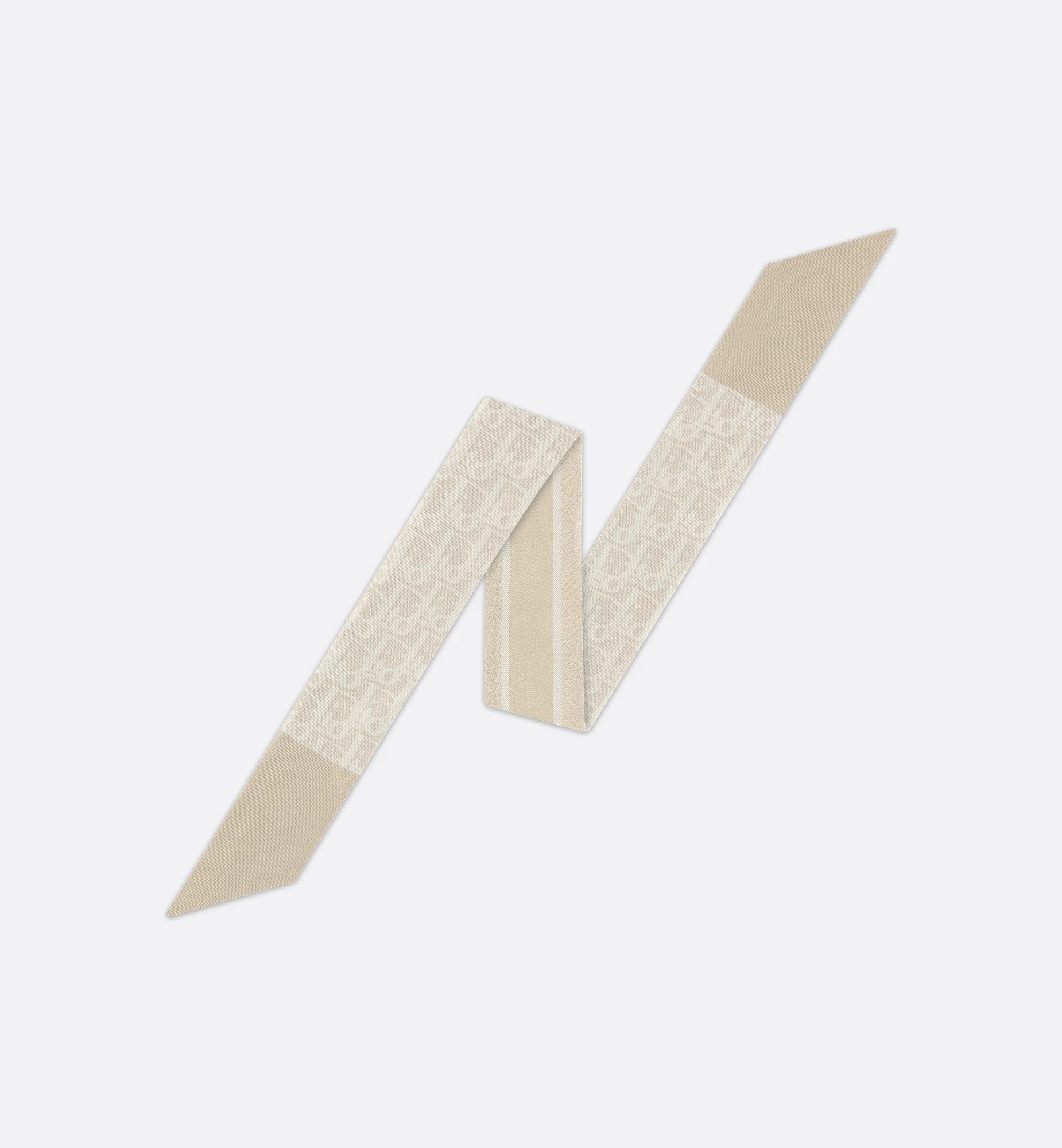 The hazelnut silk twill Mitzah scarf showcases the Dior Oblique Natte print, revisiting the House's iconic motif in a graphic style. A timeless style, the elongated shape with pointed ends is embellished with a Christian Dior signature jacquard band on the back. The Mitzah scarf will lend the finishing touch to any modern look and may be tied around the neck, at the wrist or on a bag. - Hazelnut Dior Oblique Natte print - Christian Dior signature - Tonal jacquard band with Christian Dior signature on the back - Pointed ends - 100% silk twill - Made in Italy Size & Fit - Dimensions: 105 x 6 cm / 41.5 x 2.5 inches (Length x Width)
