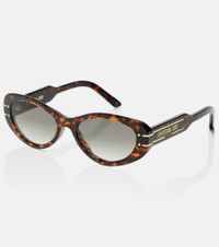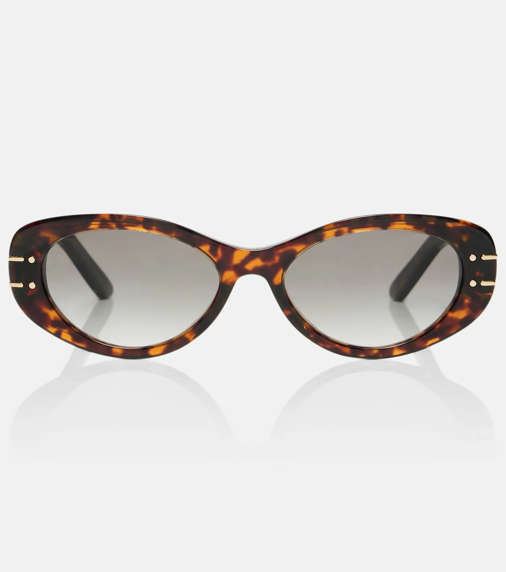 The elegant Dior Signature B8U oval sunglasses from Dior Eyewear feature gold-toned rivets and signature branding on the temples. Crafted in Italy from tortoiseshell acetate, the design is complete with gradient lenses. Product Details - Frame material: acetate - Frame color: tortoiseshell - Lens filter category 2 - Lens color: grey - Made in Italy - Includes: case and presentation box, cleaning cloth - The color of the case may vary - Lens type: gradient lenses - Item number: P01097873 Size & Fit - Lens width: 53mm-2.1" - Bridge size: 17mm-0.65" - Earpiece length: 135mm-5.3"