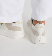 The Dior Star sneaker is a modern creation. Crafted in light beige suede calfskin, it is accented by white calfskin panels, adorned with the gold-finish CD signature and star on the sides. Completed by a thick, ultralightweight signature sole, the sneaker can be paired with laid-back outfits year-round. - Main composition: suede calfskin - Technical fabric and calfskin lining - CD signature with gold-finish star on the sides - Gold-tone Christian Dior Paris signature on the tongue - Gold-Tone Dior Star signature at the back - Signature EVA sole with star, Christian Dior's lucky symbol - Made in Italy - Additional set of laces provided Size & Fit - Platform: 5 cm / 2 inches - The style fits large, we recommend ordering a half size smaller than your normal size - Using our personalized tool will provide you with the best size recommendation - For more information, please review the size guide