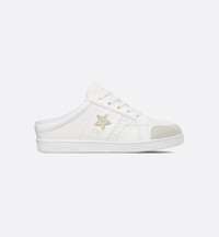 The Dior Star sneaker is available in an open-heel version. Crafted in white calfskin, the upper is accented by a tonal suede calfskin insert on the front, as well as a gold-finish metal CD signature and star on the sides. Completed by a thin signature sole, the lightweight sneaker can be paired with laid-back outfits year-round. - Main composition: calfskin - Technical fabric and calfskin lining - CD signature with gold-finish metal star on both sides - Gold-tone Christian Dior Paris signature on the tongue - Rubber sole with star, Christian Dior's lucky symbol - Made in Italy - Additional set of laces provided Size & Fit - Weight: 380 g / 13.5 ounces - Weight details may vary depending on the product's material - Using our personalized tool will provide you with the best size recommendation - For more information, please review the size guide