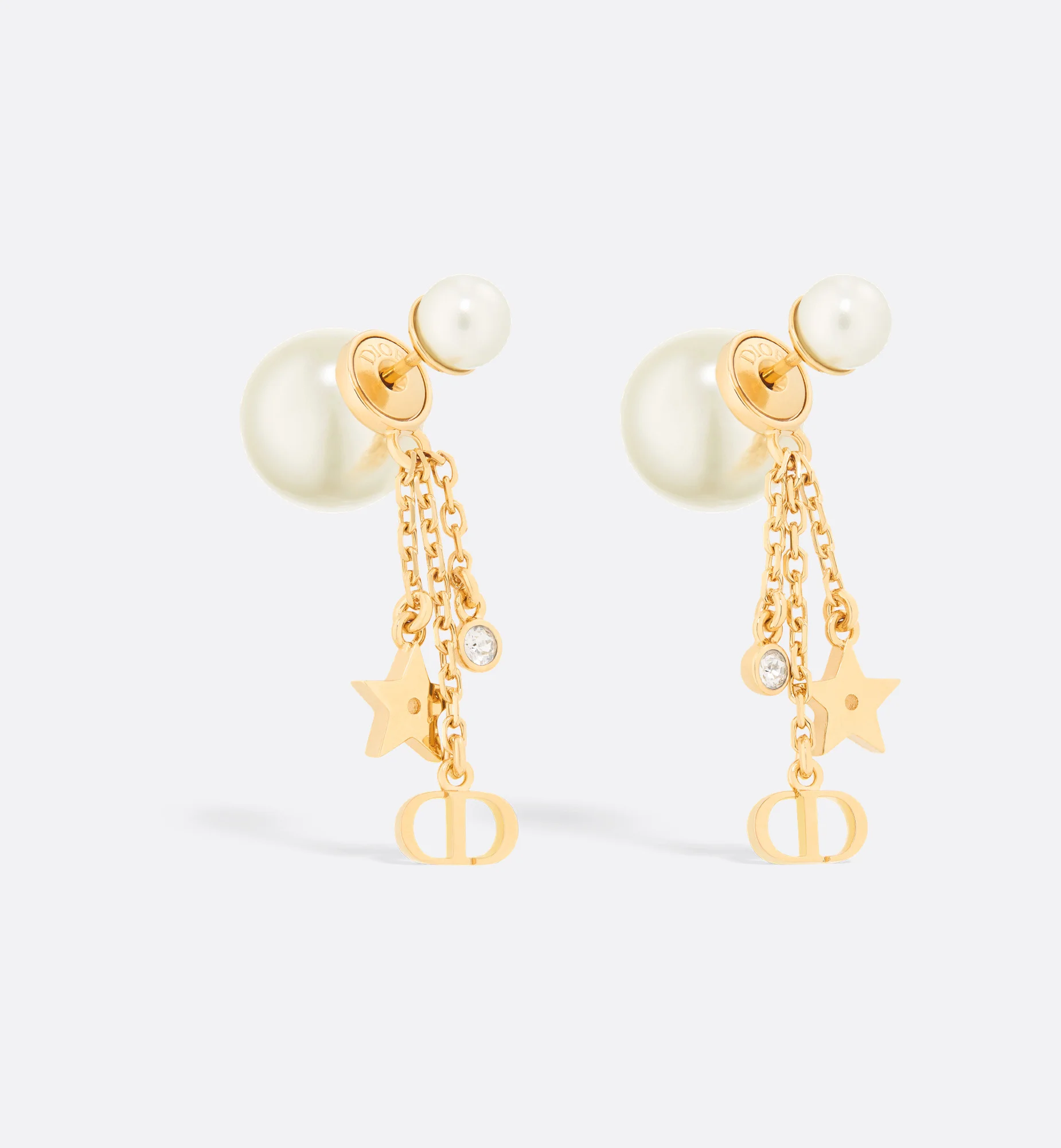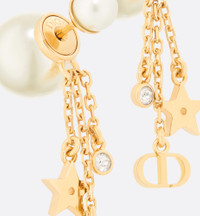 New for Winter 2025, the emblematic Dior Tribales earrings are revisited with an elegant design. The hallmark resin pearls feature small gold-finish metal chains adorned with silver-tone crystals, a star charm and the CD signature. The refined earrings can be styled with creations from the Petit CD line. - White resin pearls - Silver-tone crystals - CD signatures - Star charms - Gold-finish metal - Integrated clasp on the rear pearl - Sold as a pair - Made in Germany Size & Fit - Resin pearl diameters: 0.6 cm / 0.25 inch and 1.2 cm / 0.5 inch