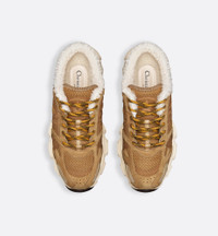 Part of the DiorAlps capsule, the Dior Chrono sneaker revisits the running shoe with the House's couture codes and an open heel. Pairing camel mesh with tonal suede calfskin panels and white lambskin shearling-effect lining, it is accented by hallmark details like the CD signature on the sides, a star patch on the tongue and a rear Dior signature. Featuring two-tone laces and an ultralightweight sole adorned with a star, the sneaker can be paired with other DiorAlps creations. - Main composition: technical fabric, calfskin and cotton - Technical fabric, virgin wool and cotton lining - CD signature on the sides - Star patch on the tongue - Dior signature on the back - Two-tone laces - Signature EVA sole with star, Christian Dior's lucky symbol - Made in Italy - Additional set of laces provided Size & Fit - Weight: 515 g / 18 ounces - Weight details may vary depending on the product's material - For more information, please review the size guide