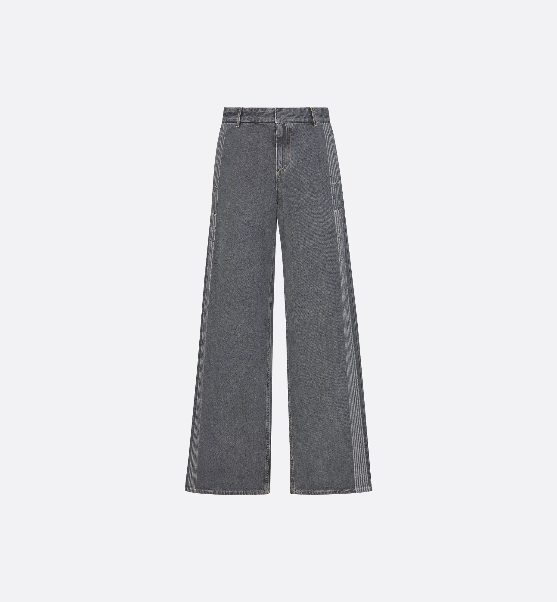 Part of the DiorAlps capsule, the jeans are a modern design crafted in gray cotton denim. They feature a flared cut enhanced by a Christian Dior Paris leather jacron label on the back and a Dior Graphique band on the sides with a motif drawn from House archives and created by Marc Bohan in 1971. Accented by side slit pockets and rear patch pockets, the jeans will pair with the matching jacket to complete a DiorAlps look. - Belt loops - Concealed zip and hook closure - Rear Christian Dior Paris leather jacron label - Unlined - 100% cotton - Made in Italy Size & Fit - Flared cut - Size 34: waist size: 72 cm / 28.5 inches, hip circumference: 88 cm / 34.5 inches, garment length: 113 cm / 44.5 inches - Size 36: waist size: 76 cm / 30 inches, hip circumference: 92 cm / 36 inches, garment length: 113 cm / 44.5 inches - Size 38: waist size: 78 cm / 30.5 inches, hip circumference: 100 cm / 39.5 inches, garment length: 115 cm / 45.5 inches - Size 40: waist size: 86 cm / 34 inches, hip circumference: 106 cm / 41.5 inches, garment length: 114 cm / 45 inches - Size 42: waist size: 90 cm / 35.5 inches, hip circumference: 110 cm / 43.5 inches, garment length: 115 cm / 45.5 inches - Size 44: waist size: 94 cm / 37 inches, hip circumference: 114 cm / 45 inches, garment length: 116 cm / 45.5 inches - Size 46: waist size: 96 cm / 38 inches, hip circumference: 116 cm / 45.5 inches, garment length: 115 cm / 45.25 inches - Each measurement may have a normal variation of 2 cm / 0.75 inch - Using our personalized tool will provide you with the best size recommendation - For more information, please review the size guide