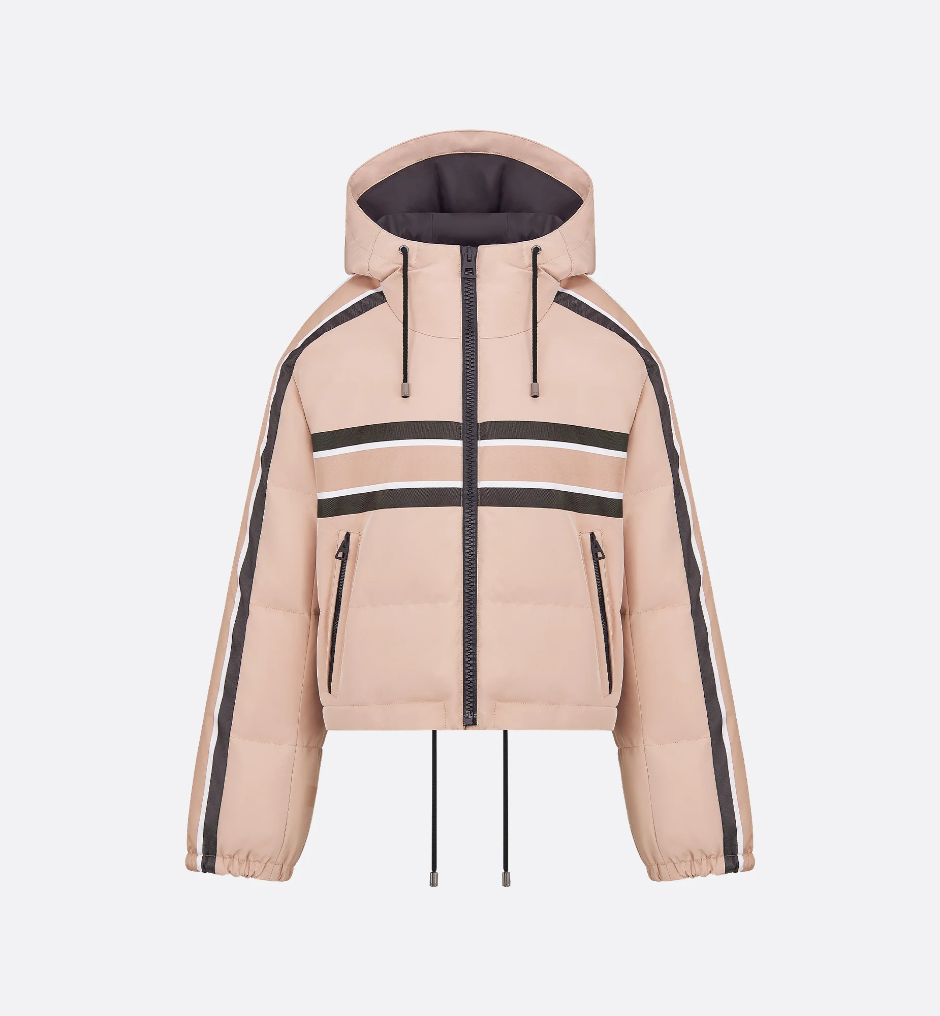Part of the DiorAlps capsule, the hooded cropped puffer jacket reimagines the winter sports universe with the House's couture codes. Crafted in pink quilted technical fabric, it features the black Dior Star motif enhanced by the Christian Dior signature as well as a practical snap patch pocket and side pockets. The technical puffer jacket can be coordinated with the matching ski pants and other DiorAlps creations to complete the look. - Christian Dior signature - Front zip closure - Drawstring hem - Lining - Filling: 100% polyester - 86% polyester, 14% polyurethane film and lining: 100% polyester - Made in Italy Size & Fit - Cropped relaxed fit - Long sleeves - Size XS: shoulder-to-shoulder width: 42 cm / 16.5 inches, chest size: 118 cm / 46.5 inches, outside and inside sleeve lengths: 58 and 47 cm / 23 and 18.5 inches, back and front lengths: 59 and 52 cm / 23 and 20.5 inches - Size S: shoulder-to-shoulder width: 45 cm / 17.5 inches, chest size: 122 cm / 48 inches, outside and inside sleeve lengths: 57 and 45 cm / 22.5 and 17.5 inches, back and front lengths: 61 and 53 cm / 24 and 21 inches - Size M: shoulder-to-shoulder width: 46 cm / 18 inches, chest size: 126 cm / 49.5 inches, outside and inside sleeve lengths: 59 and 46 cm / 23 and 18 inches, back and front lengths: 63 and 55 cm / 25 and 21.5 inches - Each measurement may have a normal variation of 2 cm / 0.75 inch - Using our personalized tool will provide you with the best size recommendation - For more information, please review the size guide