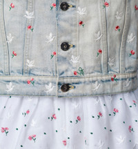 Light Blue Cotton Denim With Multicolor Doves / Roses Motif