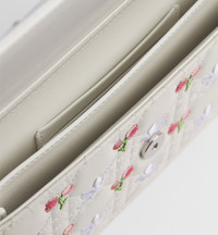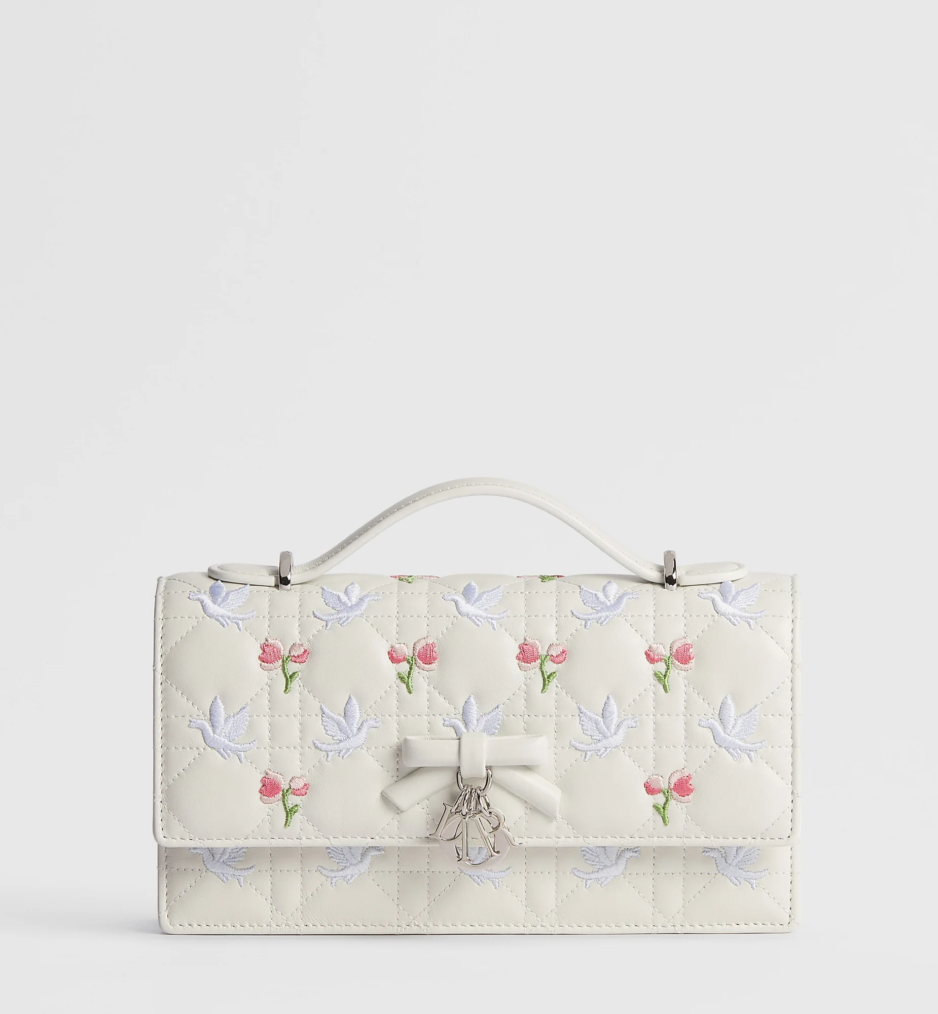 White Cannage Lambskin Embroidered With Multicolor Doves / Roses Motif
