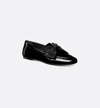 New for Fall 2025, the Diorissimo loafer celebrates couture style. The black patent calfskin upper has an almond-shaped toe, while the vamp is accented by an oversized black grosgrain bow embellished with a gold-finish metal CD signature. The shoe will complete sophisticated seasonal looks. - Main composition: calfskin, cotton and technical fabric - Goatskin lining - Grosgrain bow with gold-finish metal CD signature - Cow leather and TPU insole - Leather sole with star, Christian Dior's lucky symbol - Made in Italy Size & Fit - Weight: 240 g / 8.5 ounces - Weight details may vary depending on the product's material - Using our personalized tool will provide you with the best size recommendation - For more information, please review the size guide