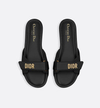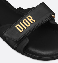 Part of the Dioriviera capsule, the modern Dioract slide is effortless to wear. The upper features a black lambskin and rubber self-fastening strap with a gold-finish metal Dior signature and tonal padded leather insole. The slide will lend a contemporary touch to any look and can be paired with other creations from the Dioriviera capsule. - Main composition: technical fabric and lambskin - Lambskin lining - Gold-finish metal Dior signature - Adjustable self-fastening strap - Padded TPU insole - Thin rubber sole with star, Christian Dior's lucky symbol - Made in Italy Size & Fit - Weight: 170 g / 6 ounces - Weight details may vary depending on the product's material - Using our personalized tool will provide you with the best size recommendation - For more information, please review the size guide