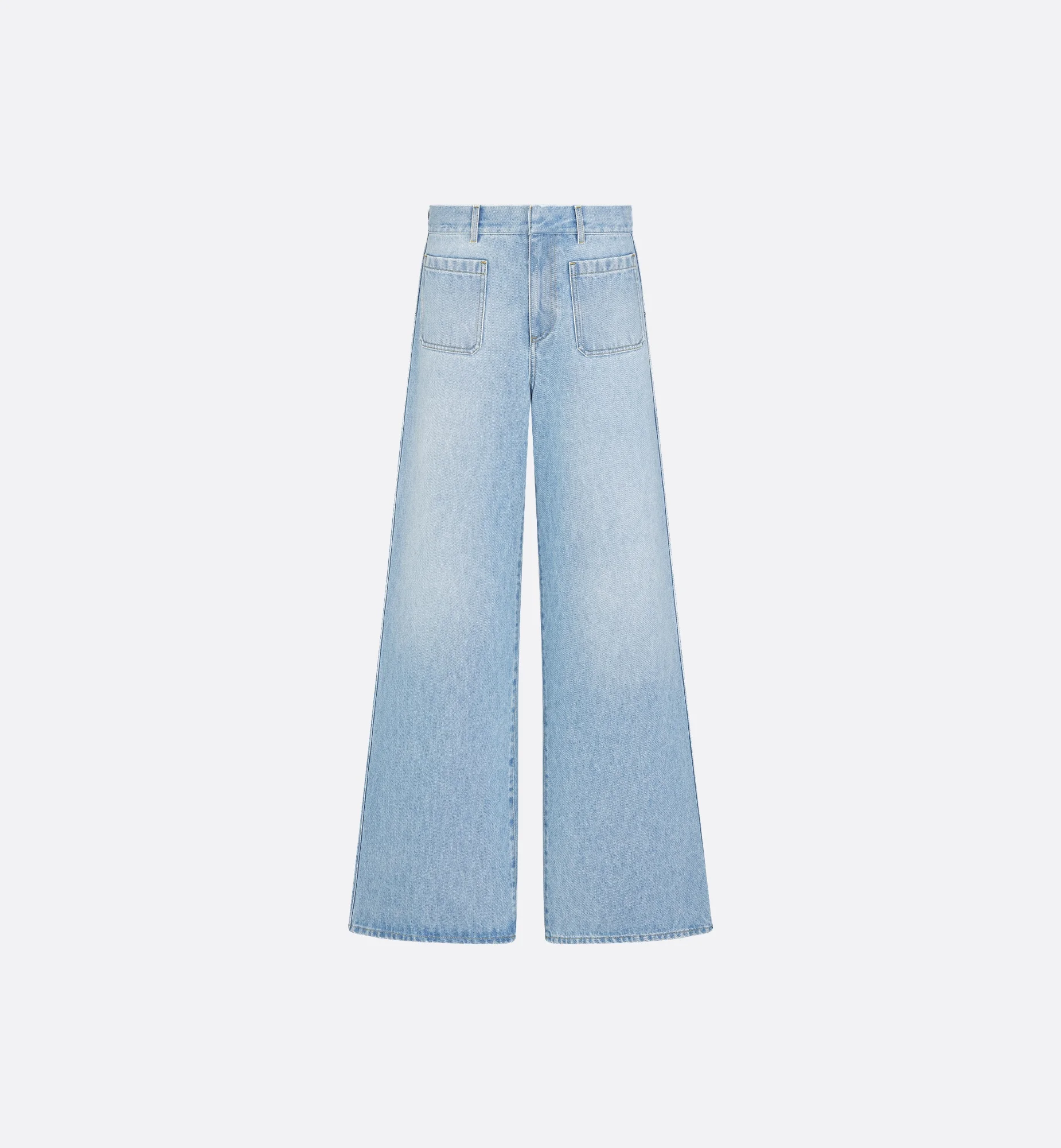Part of the Dioriviera capsule, the flared jeans are a modern creation. Crafted in light blue stonewashed cotton denim, they feature practical front and rear patch pockets. The style is elevated by a Christian Dior jacron label on the back, while the interior displays the iconic Dior Oblique motif. The jeans can be coordinated with the matching jacket and paired with other Dioriviera creations. - Belt loops - Concealed zip and hook closure - Rear Christian Dior leather jacron label - Dior Oblique motif on the interior - Unlined - 100% cotton - Made in Italy Size & Fit - Flared cut - High waist - Using our personalized tool will provide you with the best size recommendation - For more information, please review the size guide