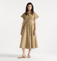 Part of the Dioriviera capsule, the mid-length shirtdress embodies the House's vision of laid-back elegance. Crafted in beige cotton gabardine, it features a flared cut enhanced by a button closure and pleats, while a tonal belt and Christian Dior Paris signature highlight the waist. The cap-sleeved dress can be paired with other Dioriviera capsule creations. - Christian Dior Paris signature at the waist - Tonal belt with metal buckle - Front button closure - Christian Dior Paris horn buttons - Unlined - 100% cotton - Made in Italy Size & Fit - Flared cut - Mid-length - Cap sleeves - The model measures 178 cm / 70 inches and the item shown is in size 36 (FR) - Using our personalized tool will provide you with the best size recommendation - For more information, please review the size guide