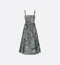 Part of the Dioriviera capsule, the mid-length dress presents the Toile de Jouy Sauvage motif, a new take on the hallmark House pattern. Made in deep blue and white cotton and silk poplin, it has a flared silhouette, square neckline and gathered detailing at the waist. The sophisticated dress will pair with other Dioriviera creations to complete the look. - Front horn buttons - Unlined - 75% cotton, 25% silk - Made in Italy Size & Fit - Flared cut - Mid-length - Sleeveless - Using our personalized tool will provide you with the best size recommendation - For more information, please review the size guide