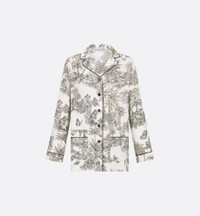 Part of the Dioriviera capsule, the shirt showcases Pietro Ruffo's white and hazelnut Toile de Jouy Palms motif, capturing the beauty of nature with a vibrant jungle scene populated by diverse wildlife. Crafted in silk twill, the design is embellished with black piping for an elegant contrast, while a button closure and two pockets adorn the front. The lightweight and refined shirt can be worn with other Dioriviera creations. - Black piping - Front button closure - Christian Dior Paris horn buttons - Unlined - 100% silk - Made in Italy Size & Fit - Relaxed fit - Size 34: shoulder-to-shoulder width: 41 cm / 16 inches, chest size: 100 cm / 39.5 inches, outside and inside sleeve lengths: 57 and 43 cm / 22.5 and 17 inches, garment length: 70 cm / 27.5 inches - Size 36: shoulder-to-shoulder width: 42 cm / 16.5 inches, chest size: 104 cm / 41 inches, outside and inside sleeve lengths: 58 and 43 cm / 23 and 17 inches, garment length: 71 cm / 28 inches - Size 38: shoulder-to-shoulder width: 43 cm / 17 inches, chest size: 108 cm / 42.5 inches, outside and inside sleeve lengths: 58 and 43 cm / 23 and 17 inches, garment length: 71 cm / 28 inches - Size 40: shoulder-to-shoulder width: 44 cm / 17.5 inches, chest size: 110 cm / 43.5 inches, outside and inside sleeve lengths: 60 and 45 cm / 23.5 and 17.5 inches, garment length: 72 cm / 28.5 inches - Size 42: shoulder-to-shoulder width: 46 cm / 18 inches, chest size: 116 cm / 45.5 inches, outside and inside sleeve lengths: 61 and 45 cm / 24 and 17.5 inches, garment length: 73 cm / 28.5 inches - Size 44: shoulder-to-shoulder width: 47 cm / 18.5 inches, chest size: 120 cm / 47 inches, outside and inside sleeve lengths: 61 and 46 cm / 24 and 18 inches, garment length: 74 cm / 29 inches - Size 46: shoulder-to-shoulder width: 48 cm / 19 inches, chest size: 122 cm / 48 inches, outside and inside sleeve lengths: 62 and 46 cm / 24.5 and 18 inches, garment length: 76 cm / 30 inches - Each measurement may have a normal variation of 2 cm / 0.75 inch - Using our personalized tool will provide you with the best size recommendation - For more information, please review the size guide