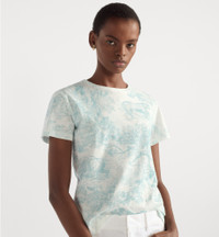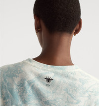 Part of the Dioriviera capsule, the T-shirt presents the Toile de Jouy Sauvage motif, a new take on the signature House pattern. Crafted in white and lily of the valley green cotton and linen jersey, the regular-fit, crew neck design is adorned with a hallmark bee and CD signature on the back. The T-shirt can be styled with other Dioriviera creations to complete the look. - Hallmark bee and CD signature on the back - Unlined - 85% cotton, 15% linen - Made in Italy - Treat with extra care and gently dry clean Size & Fit - Regular fit - Size XS: shoulder-to-shoulder width: 39 cm / 15.5 inches, chest size: 84 cm / 33 inches, outside and inside sleeve lengths: 19 and 7 cm / 7.5 and 3 inches, garment length: 61 cm / 24 inches - Size S: shoulder-to-shoulder width: 40 cm / 15.5 inches, chest size: 88 cm / 34.5 inches, outside and inside sleeve lengths: 19 and 7 cm / 7.5 and 3 inches, garment length: 62 cm / 24.5 inches - Size M: shoulder-to-shoulder width: 41 cm / 16 inches, chest size: 92 cm / 36 inches, outside and inside sleeve lengths: 19.5 and 7 cm / 7.5 and 3 inches, garment length: 63 cm / 25 inches - Size L: shoulder-to-shoulder width: 42 cm / 16.5 inches, chest size: 96 cm / 38 inches, outside and inside sleeve lengths: 20 and 7 cm / 8 and 3 inches, garment length: 64 cm / 25 inches - Size XL: shoulder-to-shoulder width: 43 cm / 17 inches, chest size: 100 cm / 39.5 inches, outside and inside sleeve lengths: 20.5 and 7 cm / 8 and 3 inches, garment length: 65 cm / 25.5 inches - Each measurement may have a normal variation of 2 cm / 0.75 inch - The model measures 177 cm / 70 inches and the item shown is in size S (FR) - Using our personalized tool will provide you with the best size recommendation - For more information, please review the size guide
