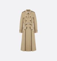 Part of the Dioriviera capsule, the trench coat embodies the House's vision of laid-back elegance. Crafted in beige cotton gabardine, it is enhanced by the Christian Dior Paris signature highlighting the waist. Adjustable button tabs adorn the sides of the waist, while topstitch detailing lends the design sophisticated appeal. Complete with two large pockets with buttoned flaps, the trench coat will be a staple that can be coordinated with other Dioriviera creations. - Christian Dior Paris signature at the waist - Tonal belt with metal buckle - Double-breasted closure with eight horn buttons - Adjustable tabs at the cuffs and shoulders - Center back vent - Storm flaps on the front - Unlined - 100% cotton - Made in Italy Size & Fit - Standard fit - Long sleeves - Using our personalized tool will provide you with the best size recommendation - For more information, please review the size guide
