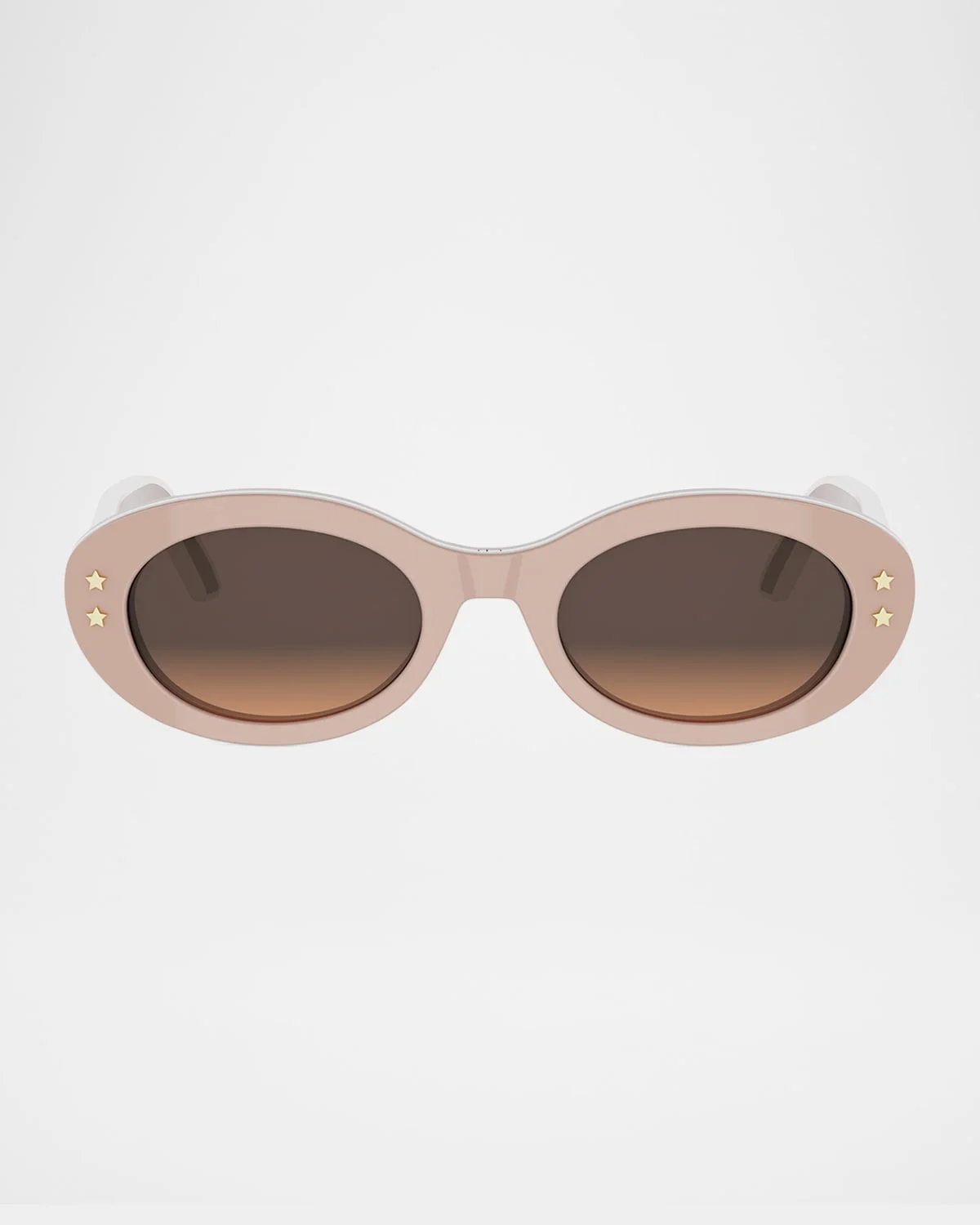 DIOR "DiorPacific B4I" oval sunglasses in acetate with small star accents Christian Dior lowrelief logo with enamel on external temples. CD laser logo on top nose. Lens/bridge/temple (in mm): 5121140 Gradient lenses Saddle nose bridge Thin, tapered arms 100% UVA/UVB protection Made in Italy