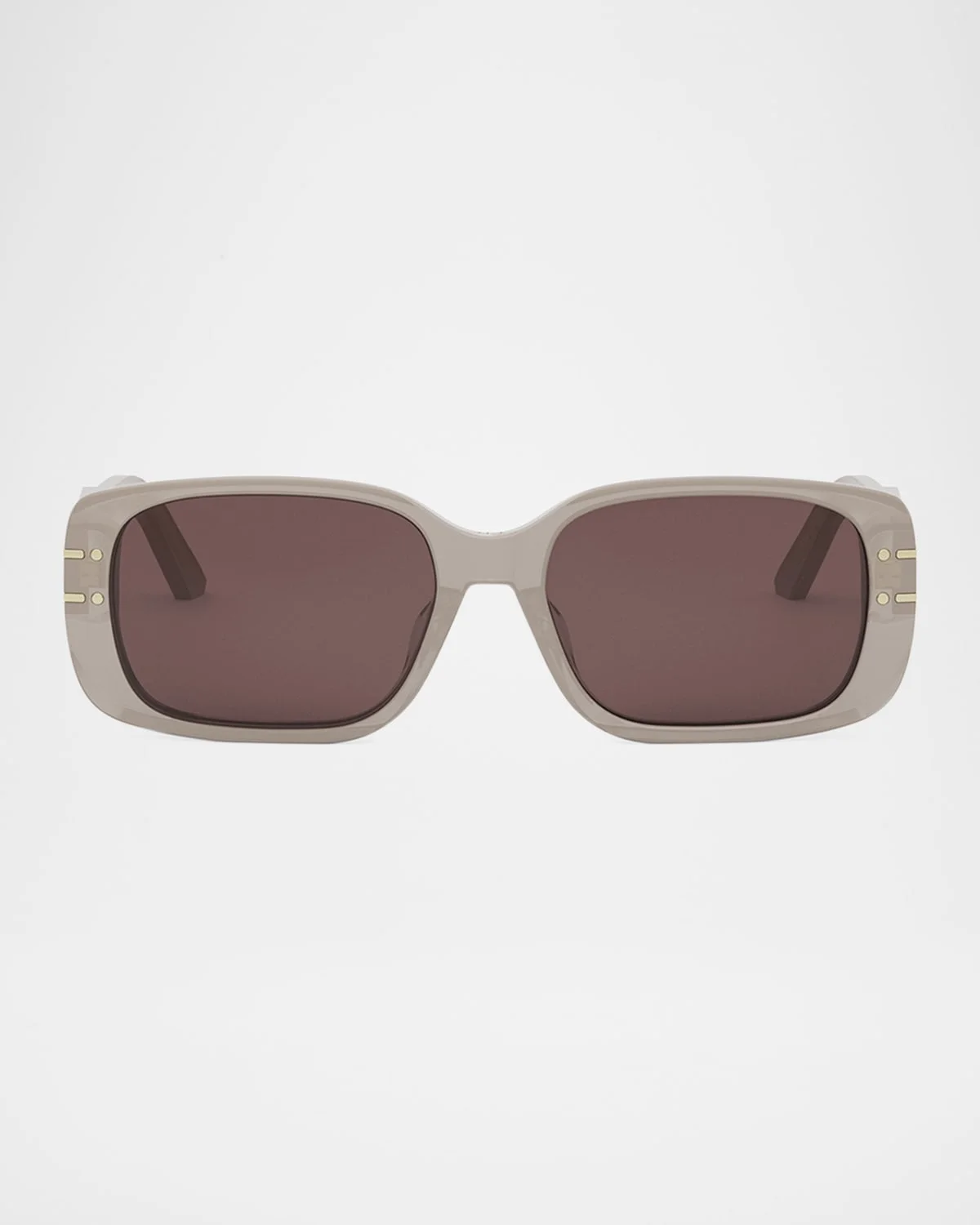 - Dior "DiorSignature S12F" rectangle sunglasses in acetate and nylon - Lens/bridge/temple (in mm): 56-17-145 - Photo engraved logo on temples with Paris laser and enamel - CD laser logo on the top nose - Solid-color lenses - Thin, tapered arms - 100% UVA/UVB protection - Made in Italy - Proposition 65 warning for California residents - This product contains perfluoroalkyl and polyfluoroalkyl substances (PFAS). For more information, please visit the manufacturer’s website.