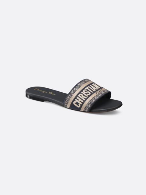 The Dway slide has a timeless and emblematic silhouette. The slide's upper features a deep blue embroidered 'CHRISTIAN DIOR' signature and instantly stands out. The streamlined shoe slips on easily and offers effortless style. - 'CHRISTIAN DIOR' signature embroidered on the upper - Matte leather insole - Sole with engraved star, Christian Dior's lucky symbol - Made in Italy Size & Fit - The style fits true to size: we recommend ordering your normal shoe size - For those with wider feet, we recommend ordering a half-size larger than your normal size - For more information, please view the size guide