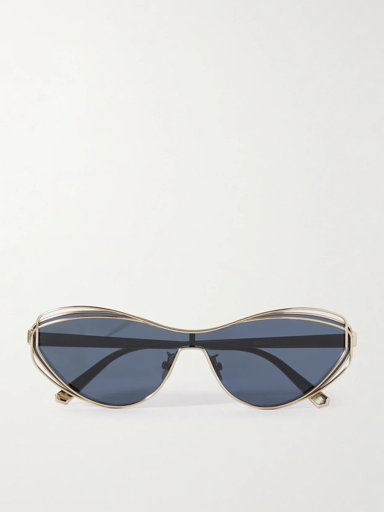 Dior Eyewear's 'FilDior M1U' sunglasses have layered cat-eye frames that instantly set them apart from any styles you may already own. They've been made in Italy from gold-tone metal and are fitted with blue lenses and adjustable nose pads for added comfort.