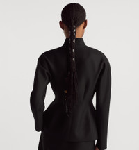 The jacket is revisited in the couture spirit of the House. Crafted in black virgin wool and silk grain de poudre, it features a button closure enhanced by a collar without lapels, inspired by House archives, as well as flap pockets highlighting the waist. The jacket can be paired with the matching skirt to complete a quintessential Dior look. - Front button closure - Christian Dior Paris horn buttons - Tonal lining - 78% virgin wool, 22% silk and lining: 100% silk - Made in France Size & Fit - Fitted silhouette - Long sleeves - The model measures 178 cm / 70 inches and the item shown is in size 36 (FR) - Using our personalized tool will provide you with the best size recommendation - For more information, please review the size guide