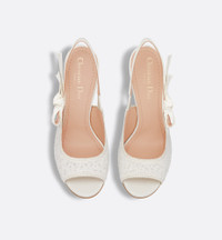 - Tonal J'Adior embroidered cotton ribbon - Flat bow - Low-cut upper with pinked edge - Leather sole with star, Christian Dior's lucky symbol - Made in Italy Size & Fit - Comma heel: 10 cm / 4 inches - The style fits true to size, we recommend ordering your normal shoe size - For those with wider feet, we recommend ordering a half-size larger than your normal size - For more information, please review the size guide