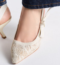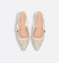 The J'Adior slingback pump is a prime example of Dior's savoir-faire, crafted with passion in the Christian Dior Italian ateliers. The transparent mesh design with white embroidered cotton ribbon features the Dior Cabinet de la Mer motif by Pietro Ruffo, showcasing a romantic underwater world with seahorses, shells and coral. The J'Adior tonal embroidered ribbon, embellished with a flat bow, along with a 6.5-cm (2.5) comma heel offer an elegant and refined style. The shoe can be paired with other pieces from the Dior Cabinet de la Mer collection. - Main composition: technical fabric, cotton and lambskin - Technical fabric and goatskin lining - Tonal J'Adior embroidered cotton ribbon - Flat bow - Low-cut upper with pinked edge - Calfskin sole with star, Christian Dior's lucky symbol - Made in Italy Size & Fit - Comma heel: 6.5 cm / 2.5 inches - The style fits true to size, we recommend ordering your normal shoe size - Using our personalized tool will provide you with the best size recommendation - For more information, please review the size guide