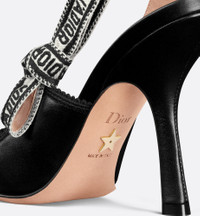 The J'Adior slingback pump is a prime example of Dior's savoir-faire. Crafted with passion in Christian Dior's Italian ateliers, the silhouette is distinguished by black calfskin. The J'Adior two-tone embroidered ribbon is embellished with a flat bow, and a 10-cm (4) comma heel offers an elegant and refined finishing touch. - J'Adior two-tone embroidered cotton ribbon - Flat bow - Low-cut upper with pinked edge - Leather sole with star, Christian Dior's lucky symbol - Made in Italy Size & Fit - Comma heel: 10 cm / 4 inches - The style fits true to size, we recommend ordering your normal shoe size - For those with wider feet, we recommend ordering a half-size larger than your normal size - Using our personalized tool will provide you with the best size recommendation - For more information, please review the size guide