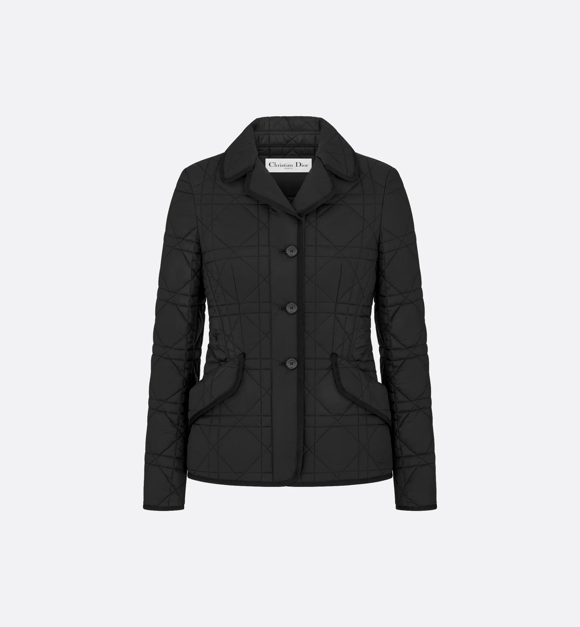 The Bar Jacket, a hallmark Dior silhouette, is reimagined in an ultra-modern Macrocannage variation. Crafted in black technical taffeta, it is distinguished by a notched collar and flap pockets that delicately highlight the waist. It also features practical interior patch pockets. Combining elegance with sportswear appeal, the jacket can coordinate with the entire Maison Dior wardrobe and may be paired with one the collection's pants, thus creating an elegant and refined look. - Button closure - Horn buttons - Lining - 100% polyester and lining: 100% polyester - Made in Italy Size & Fit - Fitted silhouette - Back length: 60 cm / 23.5 inches (size 38) - Long sleeves - Using our personalized tool will provide you with the best size recommendation - For more information, please review the size guide