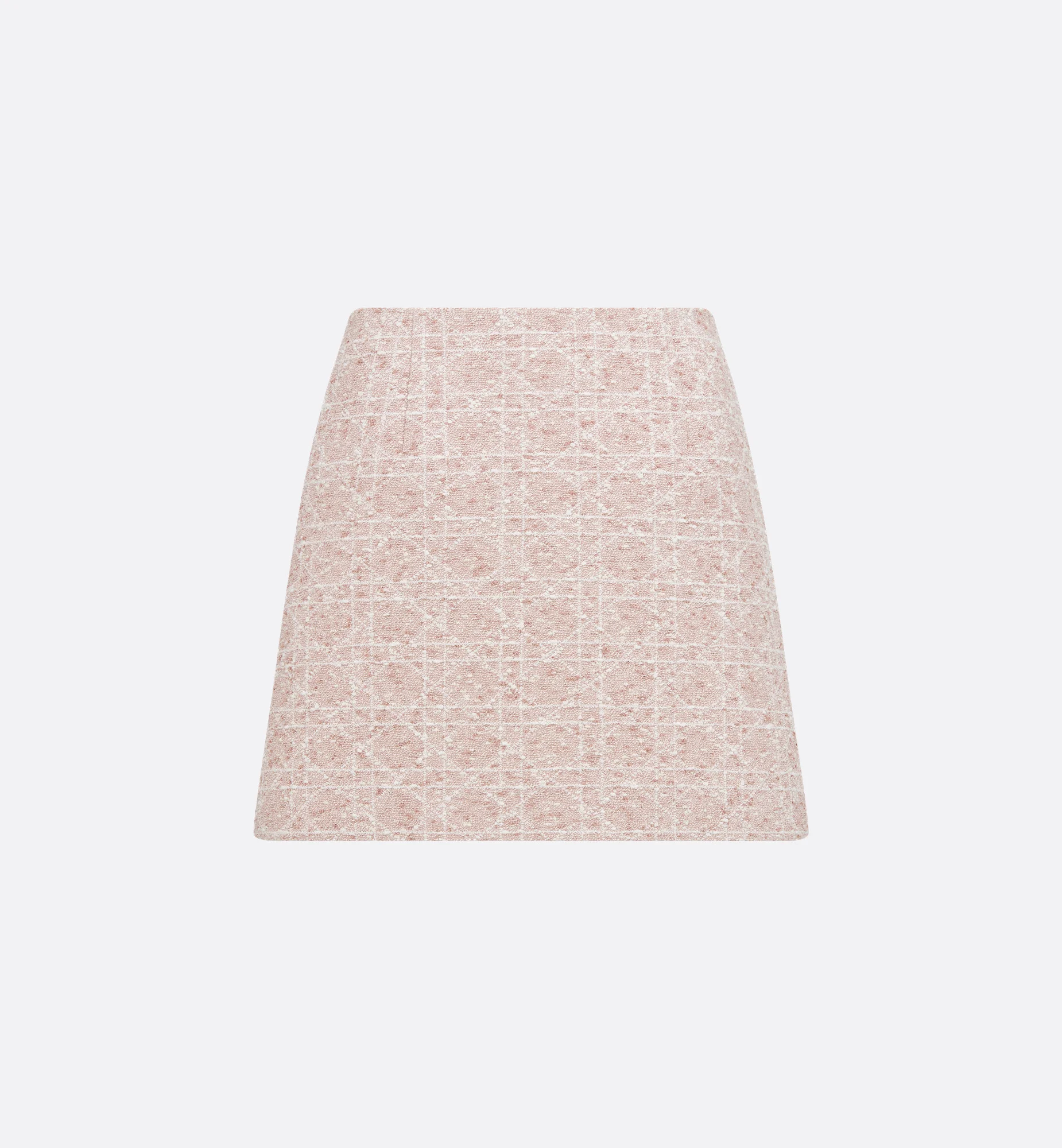 The miniskirt offers a new take on Dior's codes of elegance. Crafted in cotton-blend tweed with a peach blossom pink Macrocannage motif, it features a sophisticated flared silhouette and practical side slit pockets. The miniskirt can be paired with the matching jacket to complete the look. - Concealed side zip and hook closure - Tonal lining - 42% cotton, 42% acrylic and 16% polyamide and lining: 100% silk - Made in Italy Size & Fit - Flared cut - Short silhouette - Using our personalized tool will provide you with the best size recommendation - For more information, please review the size guide