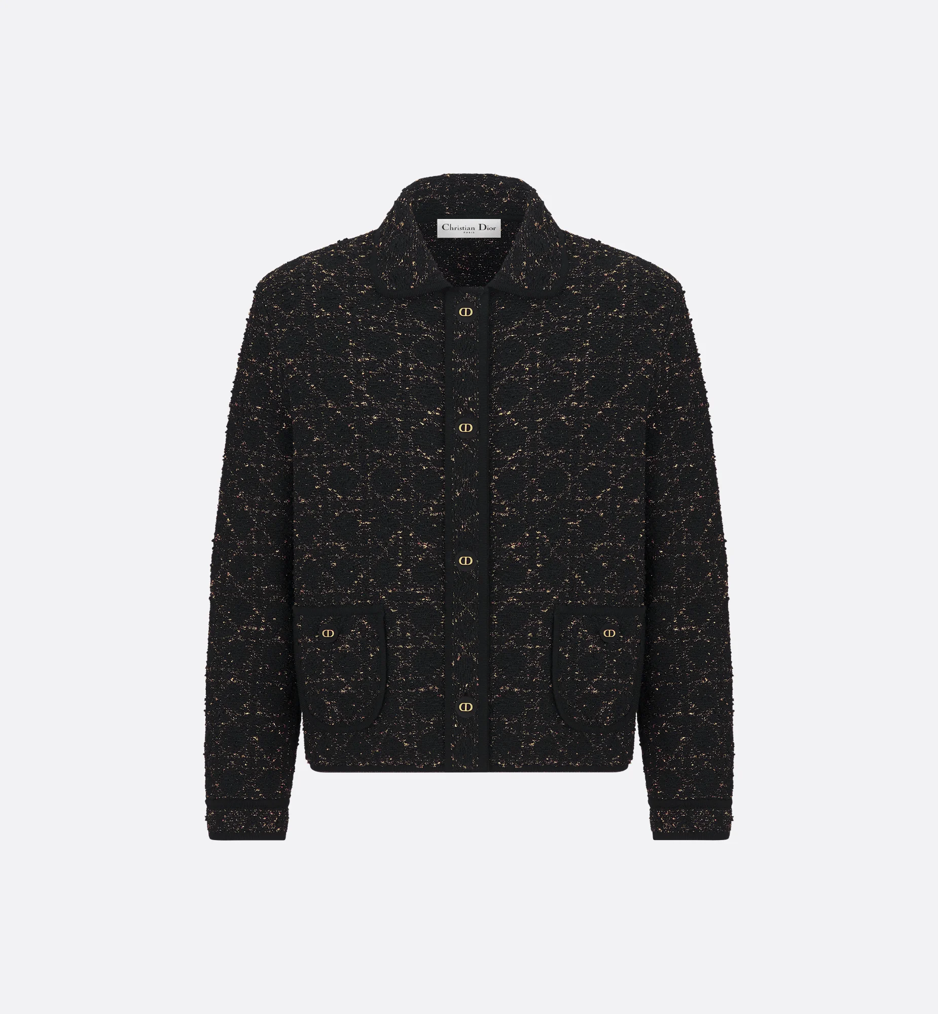 Black And Gold Tone Cotton Blend Tweed Knit